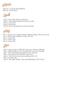 If you’re playing in our April Solo Recital, dress rehearsal is Tuesday, April 7 from 5:00-6:45 in Room 4A MYArts.  A rehearsal time with the accompanist should have been emailed to you!